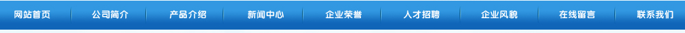 網(wǎng)站首頁 | 公司簡介 | 產(chǎn)品介紹 | 新聞中心 | 企業(yè)榮譽 | 人才招聘 | 企業(yè)風貌 | 在線留言 | 聯(lián)系我們 | ENGLISH 【后臺管理